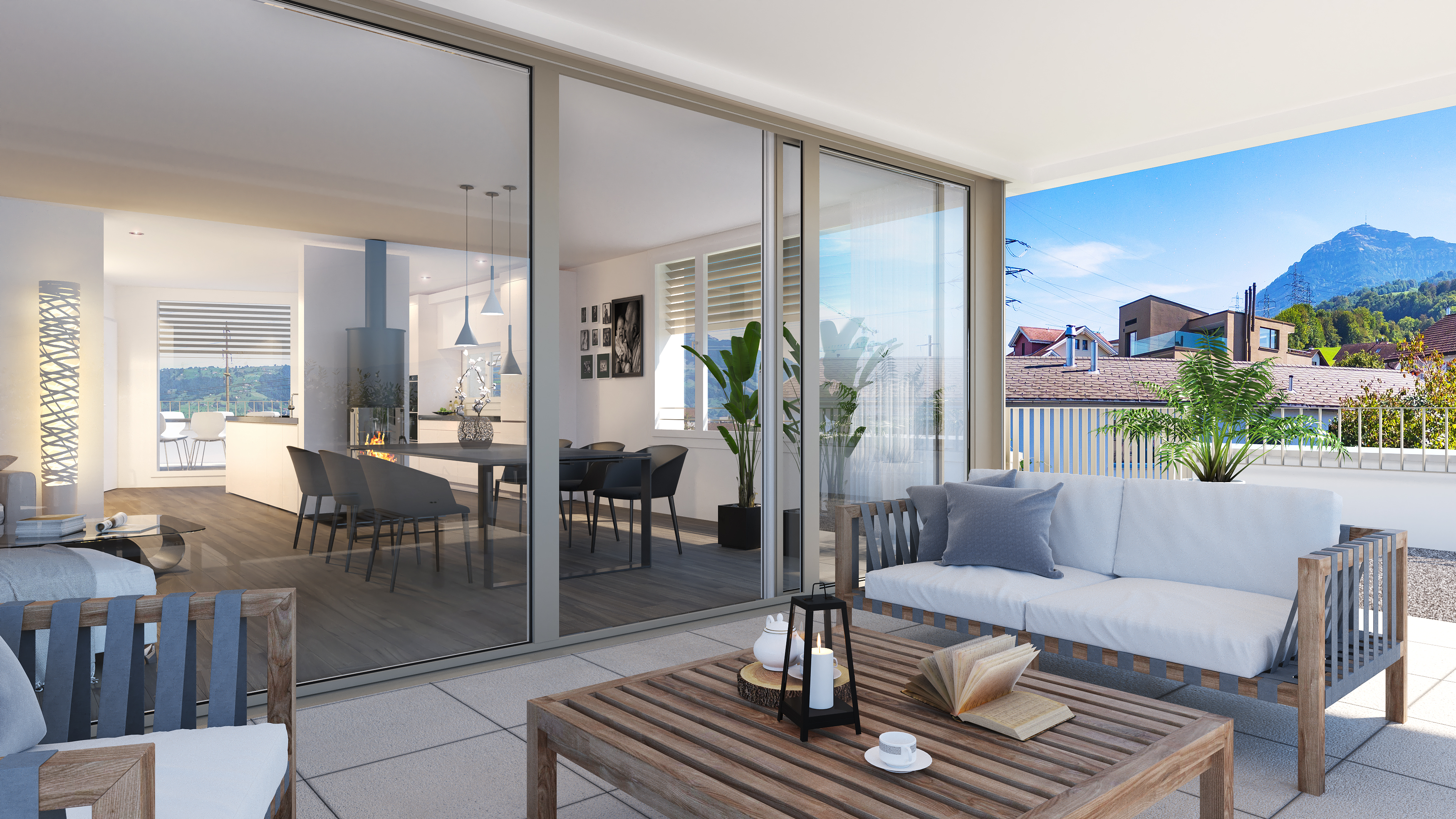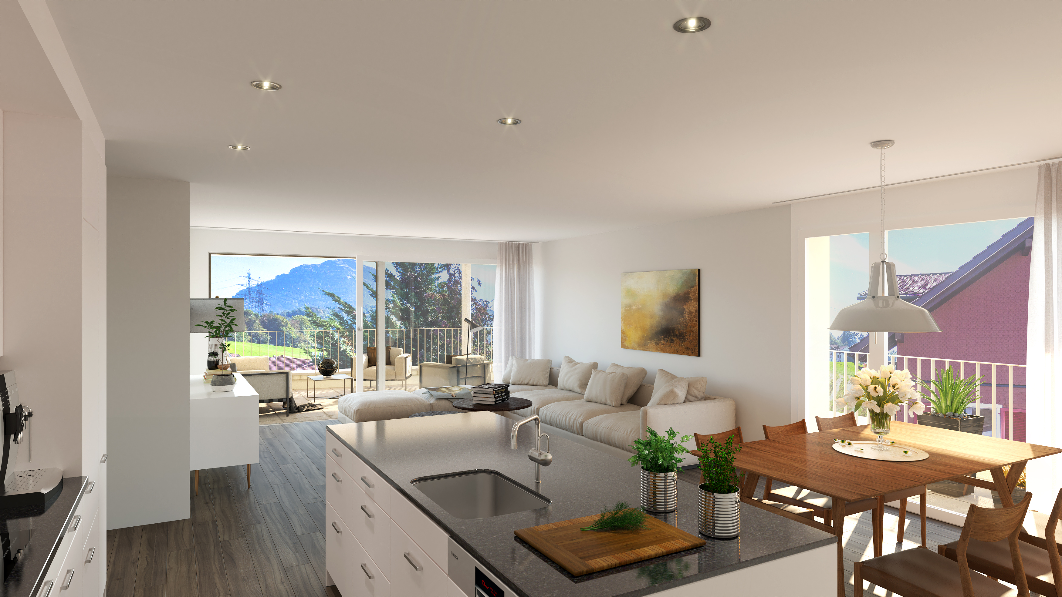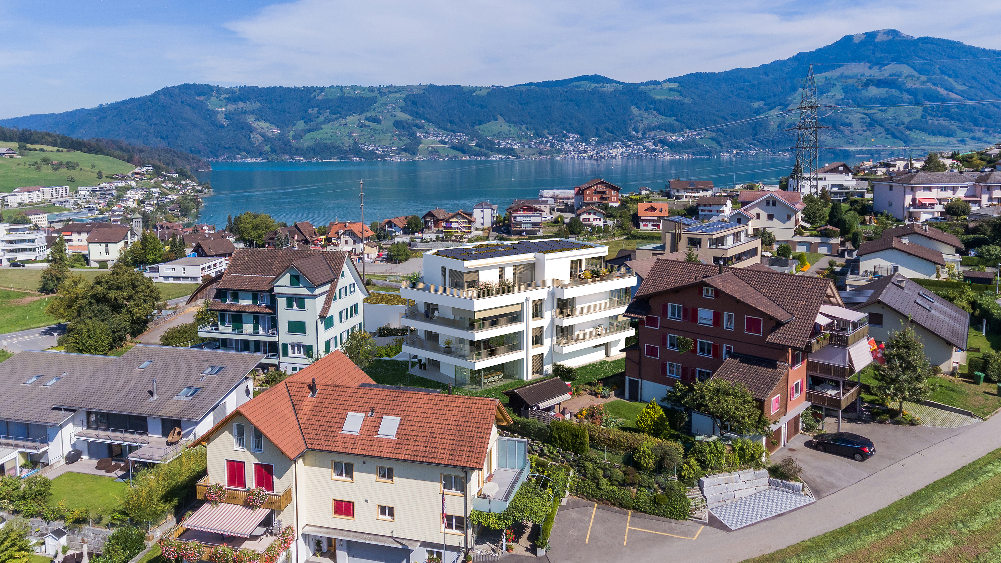 Das bisherige Einfamilienhaus wurde durch ein Mehrfamilienhaus mit sechs Wohnungen und einer Tiefgarage ersetzt. Auf der abparzellierten Restfläche konnte zudem, trotz spezieller Geländetopografie, ein gelungenes modernes EFH erstellt werden.