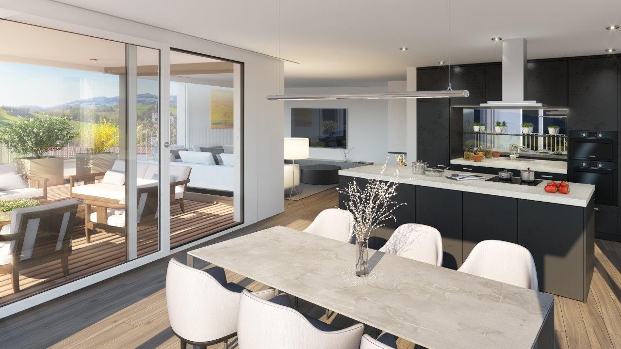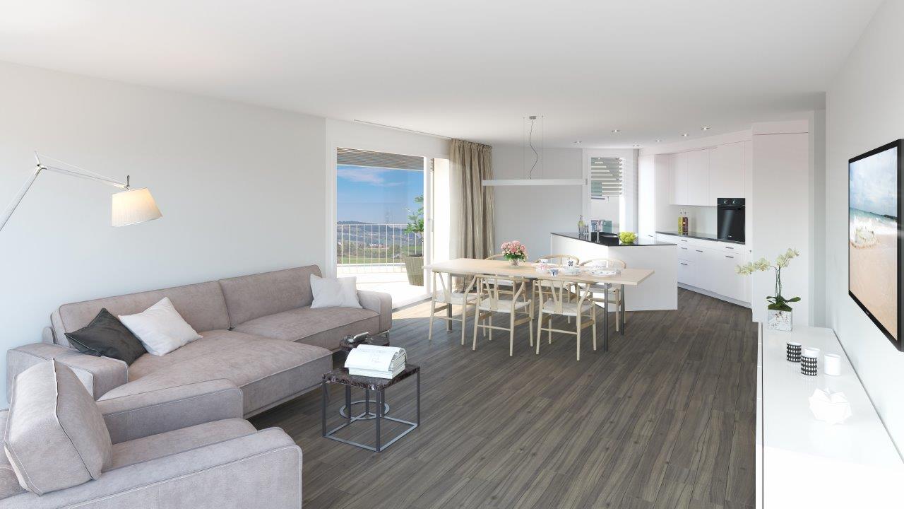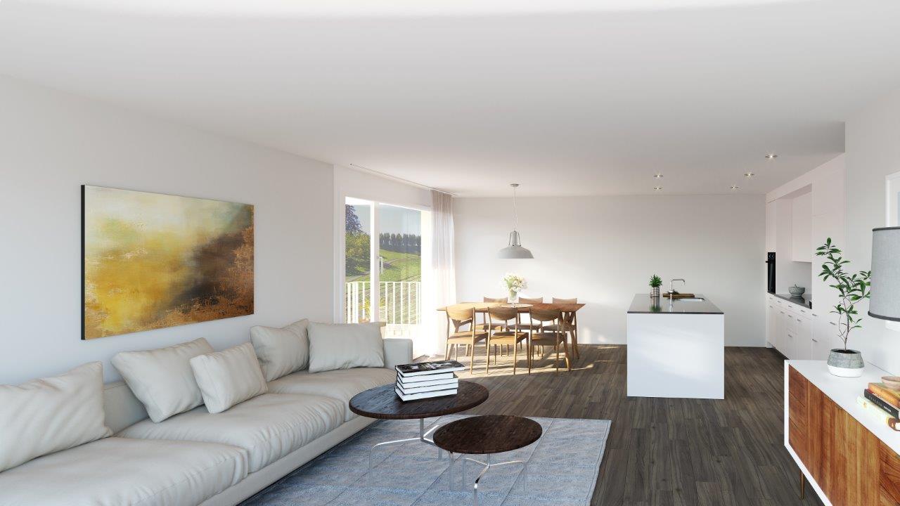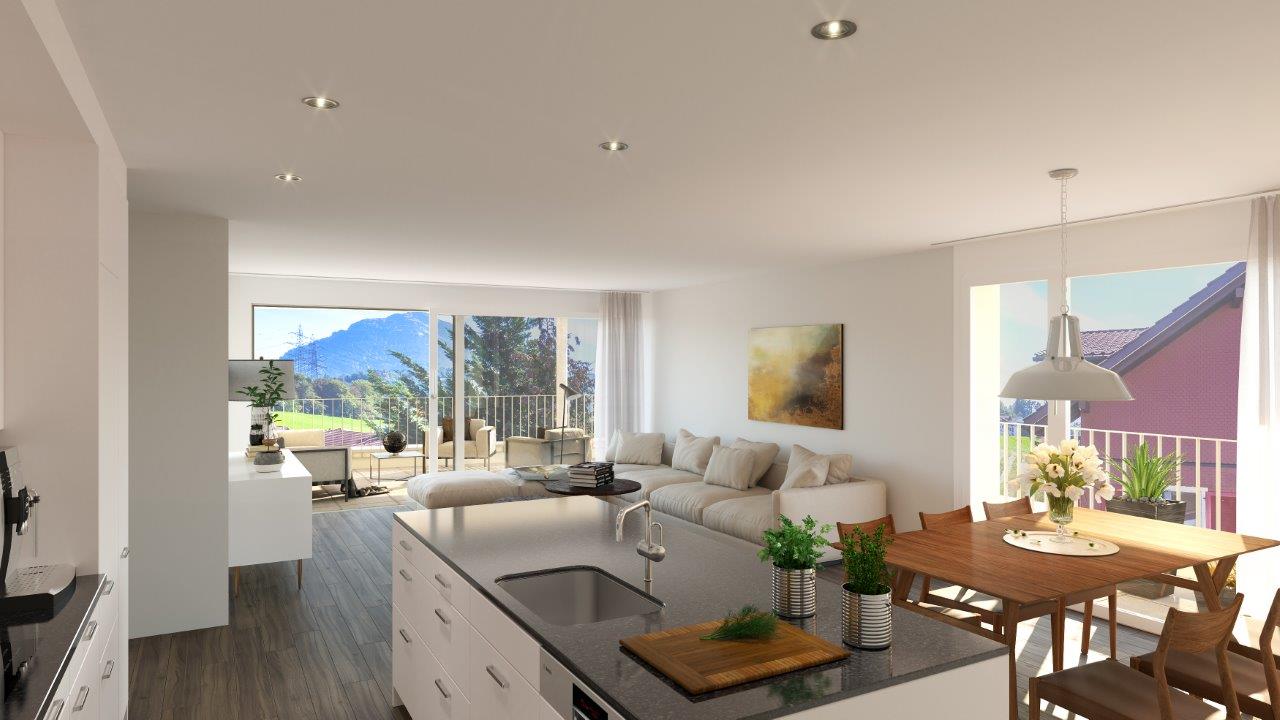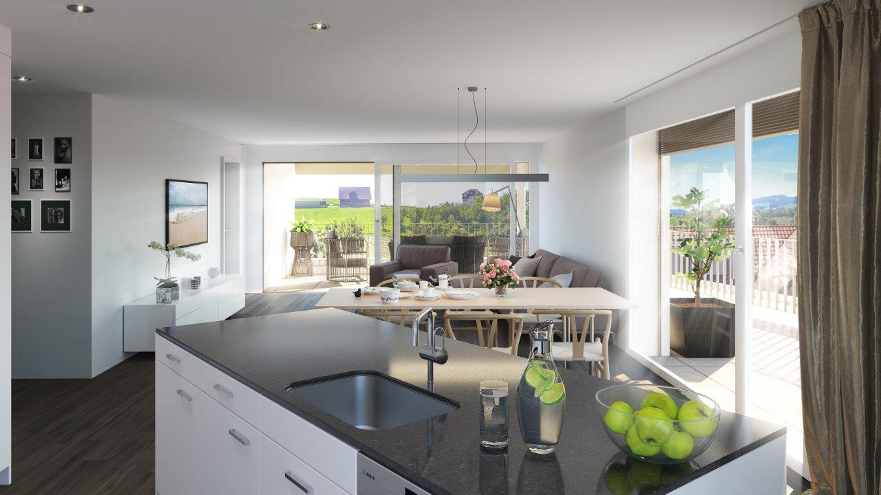 Neubau MFH (sechs Wohneinheiten) mit Einstellhalle an ruhiger und guter Lage. Die moderne Architektur, die 270 Grad-Rundsicht sowie die optimale Besonnung bieten entspanntes Wohnen.